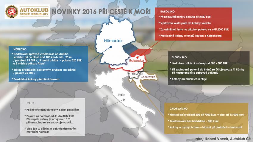 Mnoho českých turistů v minulosti poznalo krásy Jadranu a stejně jako v minulých letech i v letošním roce stráví svoji dovolenou na plážích Itálie a Chorvatska. Drtivá většina pak volí cestu autem spolu s celou rodinou. Pro motoristy z České republiky, mířící na Jadran do Chorvatska a Itálie, připravil Autoklub České republiky několik důležitých informací.