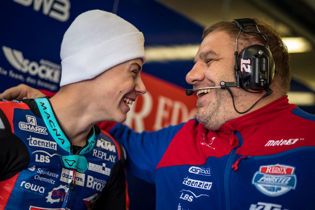 „V ranním tréninku pršelo a já se na začátku pohyboval v Top5. Poté jsem se posunul na desátou pozici a neustále se držel mezi patnáctým a desátým místem. S každým kolem jsem zrychloval a jel na limitu. Snažil jsem se zrychlit ještě víc, ale dostal jsem highsider, který jsem ustál. Hned poté jsem zajel do boxů, abychom upravili nastavení motorky. Potřeboval jsem lepší grip, nicméně provedená změna byla ještě horší a už jsem nezrychlil. Motorka se mi klouzala a začal se mi k tomu zavírat předek. Trénink jsem dojel na 17. místě se ztrátou jedné vteřiny. To je na mokru málo, takže jsem byl spokojený.“