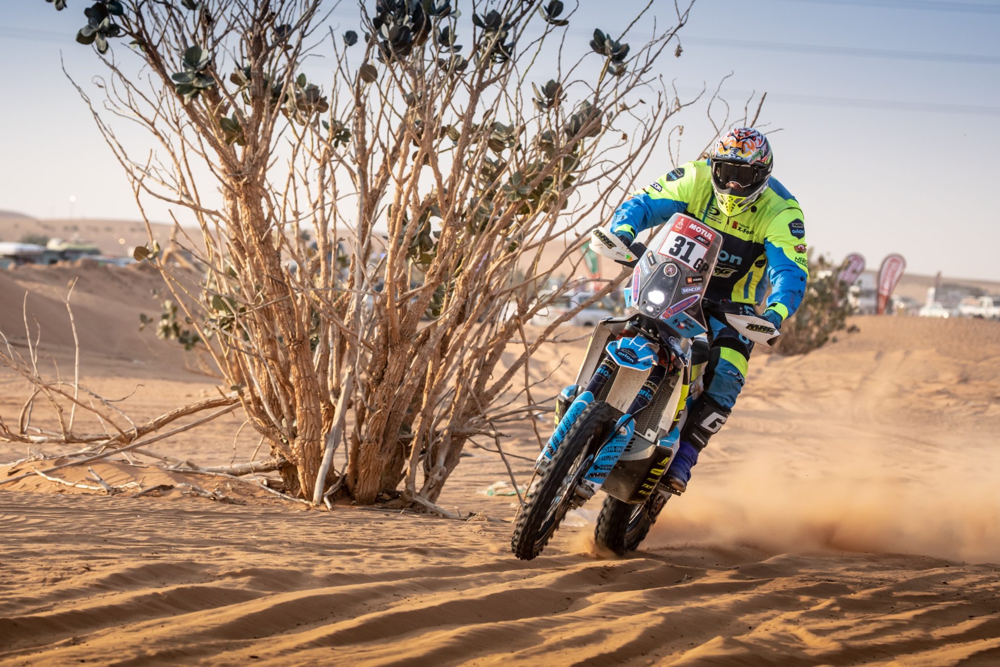 Posledních 100 kilometrů v dunách bylo podle obou jezdců ORION – Moto Racing Group ukrutně náročných. „Masakr. Masakr. Masakr. Překonávali jsme opravdu zrádné duny, které byly specifické tím, že za nimi byla díra dolů. Člověk skočil z velké výšky na rovinu. Musel jsem dávat bacha, najíždět to šikovně a dívat se dopředu, jak ta duna bude vypadat,“ sdělil Michek. „Největší problémy mi dělaly mokré duny. V nich jsem poměrně ztrácel. Kvůli dešti byly ty haldy písku záludné. Když jsem jel mimo stopu, tak to klouzalo, když ve stopě, tak byl ten písek takový hutný,“ vysvětlil Engel. „Jiné duny zase byly zrádné v tom, že se rychle lámaly. Člověk pak musel mít dobrou rychlost, aby to zvládl překonat bez pádu. Ale nakonec jsem si s tím nějak poradil,“ těšilo motokrosař z Jablonce nad Nisou, který je celkově zatím šestadvacátý.