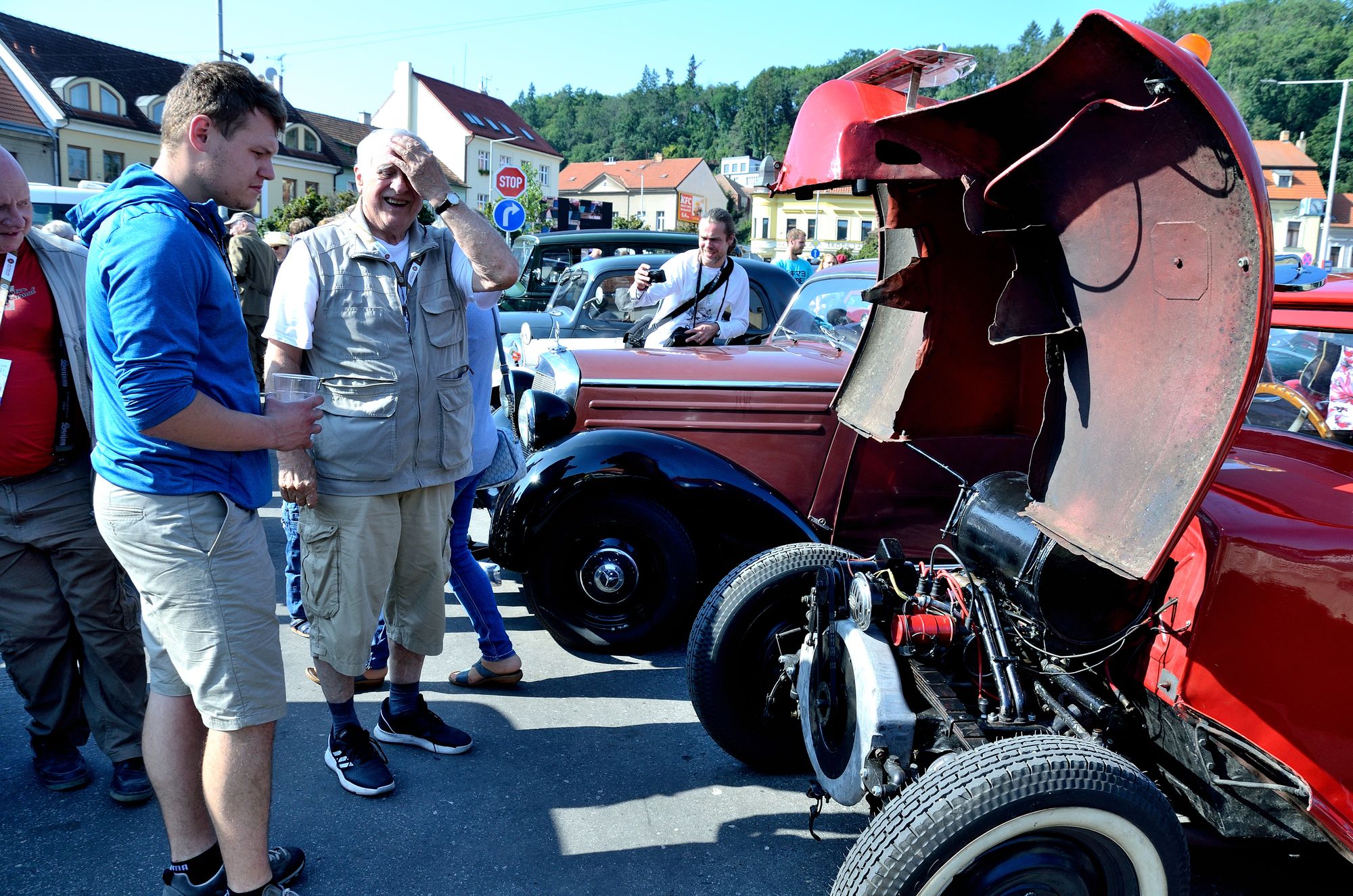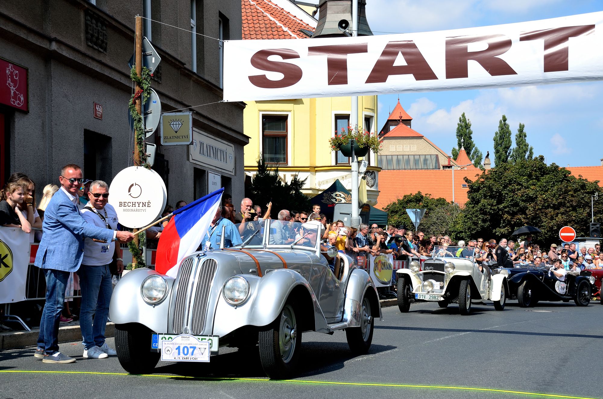 Akce začala technickou přejímkou a nájezdem vozidel na určená místa v sektorech Zbraslavského náměstí. U památníku byla ta nejstarší, například automobil Laurin&Klement z roku 1913, nad nimi početná stáj vozů značky Bugatti. Na druhé straně bylo místo pro motocykly a parkoviště na náměstí zaplnily další automobily. Tentokrát byla výstava rozšířena i do ulice U Národní galerie, kde se představily formule.