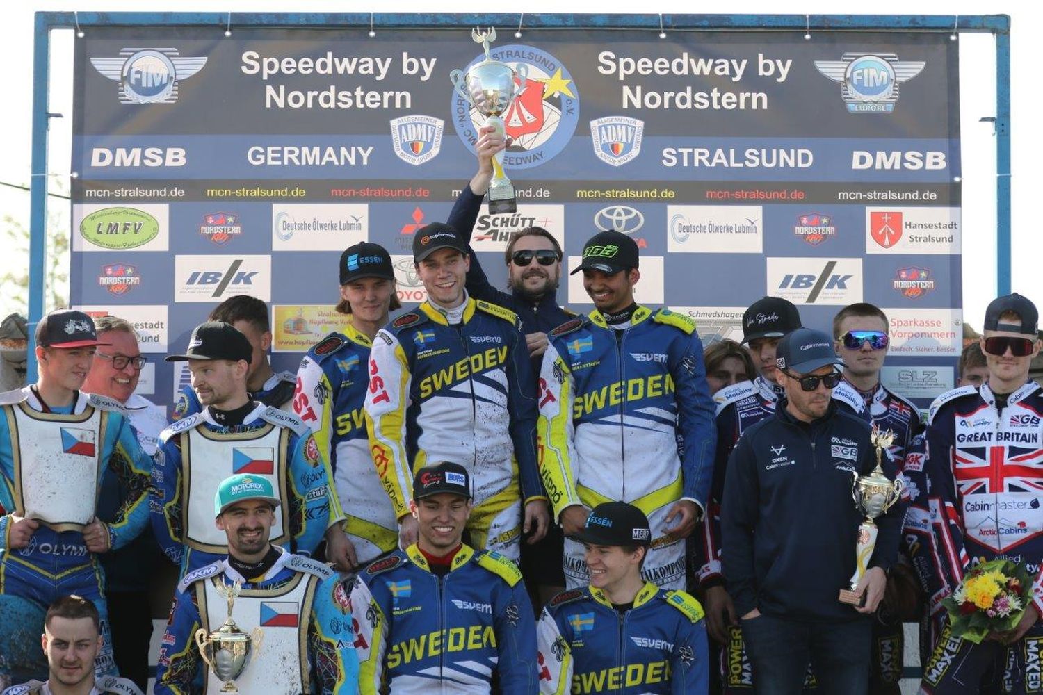 Naši jezdci především díky výbornému závěru obsadili v tomto závodě 2. místo (na snímku ze stupňů vítězů naši reprezentanti vlevo) před týmy Velké Británie a domácího Německa. V celkové klasifikaci šampionátu patří našim jezdcům páté místo, ale věkový průměr týmu nám dává velkou šanci do budoucna.