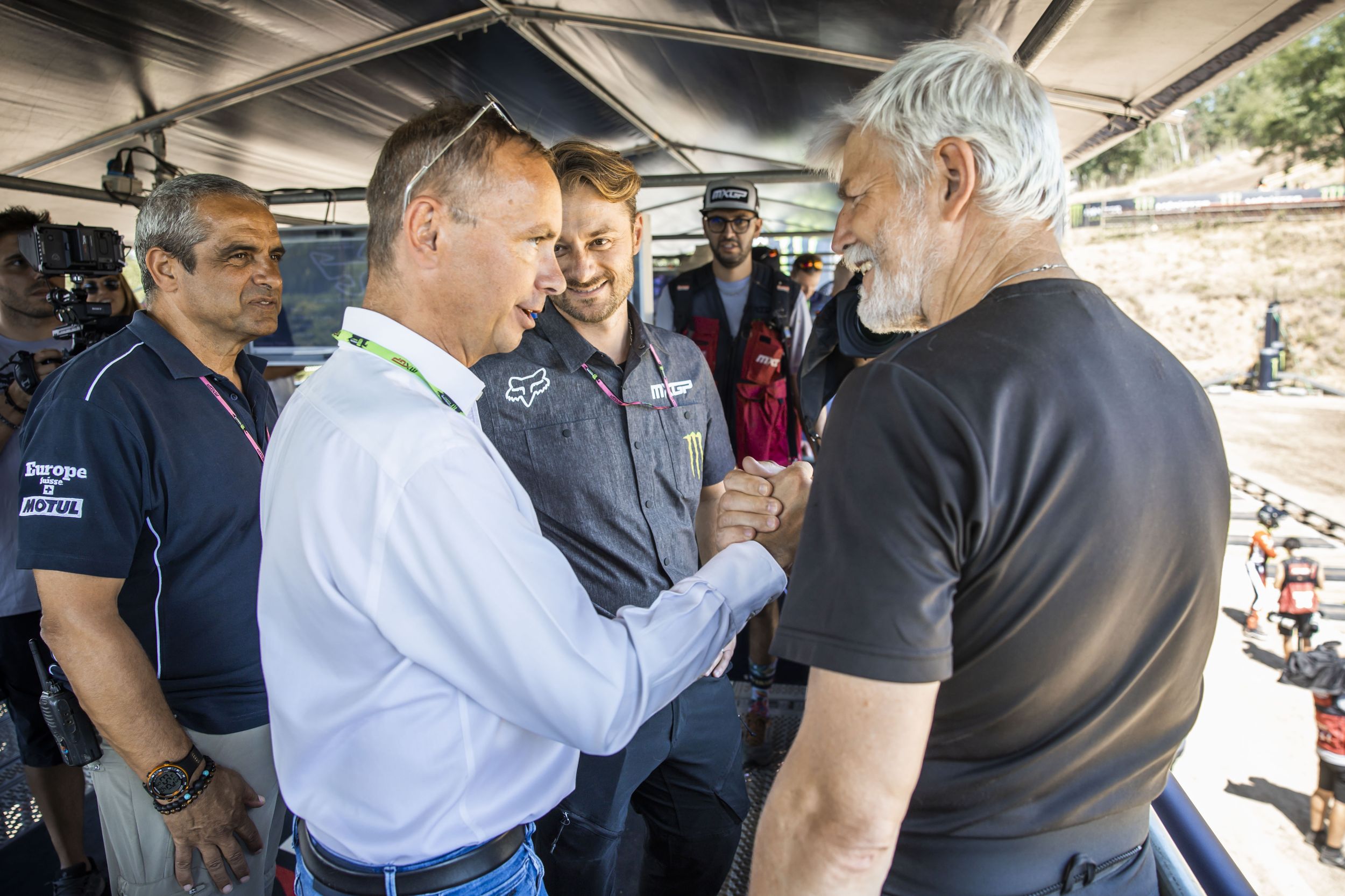 Po příjezdu se prezident Petr Pavel setkal s generálním ředitelem Infront Moto Racing Davidem Luongem a organizátory Grand Prix. David Luongo daroval panu Pavlovi závodní dresy současných lídrů šampionátu, českého prezidenta pozdravil ředitel Komise motokrosu FIM Antonio Alia Portela a další činovníci Mezinárodní motocyklové federace.