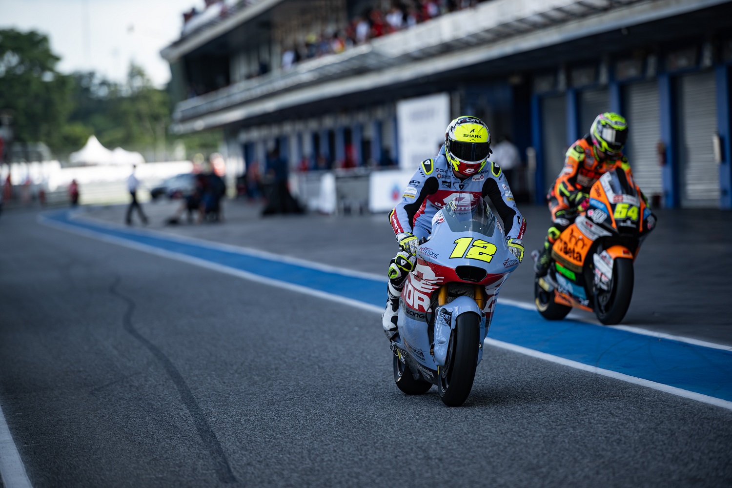 „Čekal jsem, že se poslední změna v nastavení, kterou jsme udělali po pátečním programu, projeví více. Ale moc to nepomohlo. Oproti včerejšku jsem sice zrychlil, ale jen nepatrně. Takže do první části kvalifikace jsme se vrátili k nastavení z Mugella, o kterém víme, že fungovalo dobře. Bohužel se s ním nemůžeme pustit do závodu, protože rychle žere přední pneumatiku. Každopádně jsem zajel slušný čas, který mě posunul do Q2, kde jsem ale spadl hned v prvním měřeném kole. Nevím, jestli to byla moje chyba nebo technická závada, prostě se mi nepovedlo podřadit na správnou rychlost do zatáčky. Motorku jsem sice zvedl a dojel zpátky do boxů, ale byla hodně rozbitá a mechanici udělali kompromis, abych mohl zajet alespoň jedno nebo dvě kola. Na slušný čas jsem už ani nepomýšlel. Pochopitelně mě to mrzí, nezažívám teď úplně dobré chvíle, ale to k tomuhle sportu prostě patří. Na druhou stranu mě i neúspěchy posilují. Psychicky každopádně, protože ten tlak je opravdu obrovský,“ komentoval dnešní den v Thajsku Filip Salač #12.