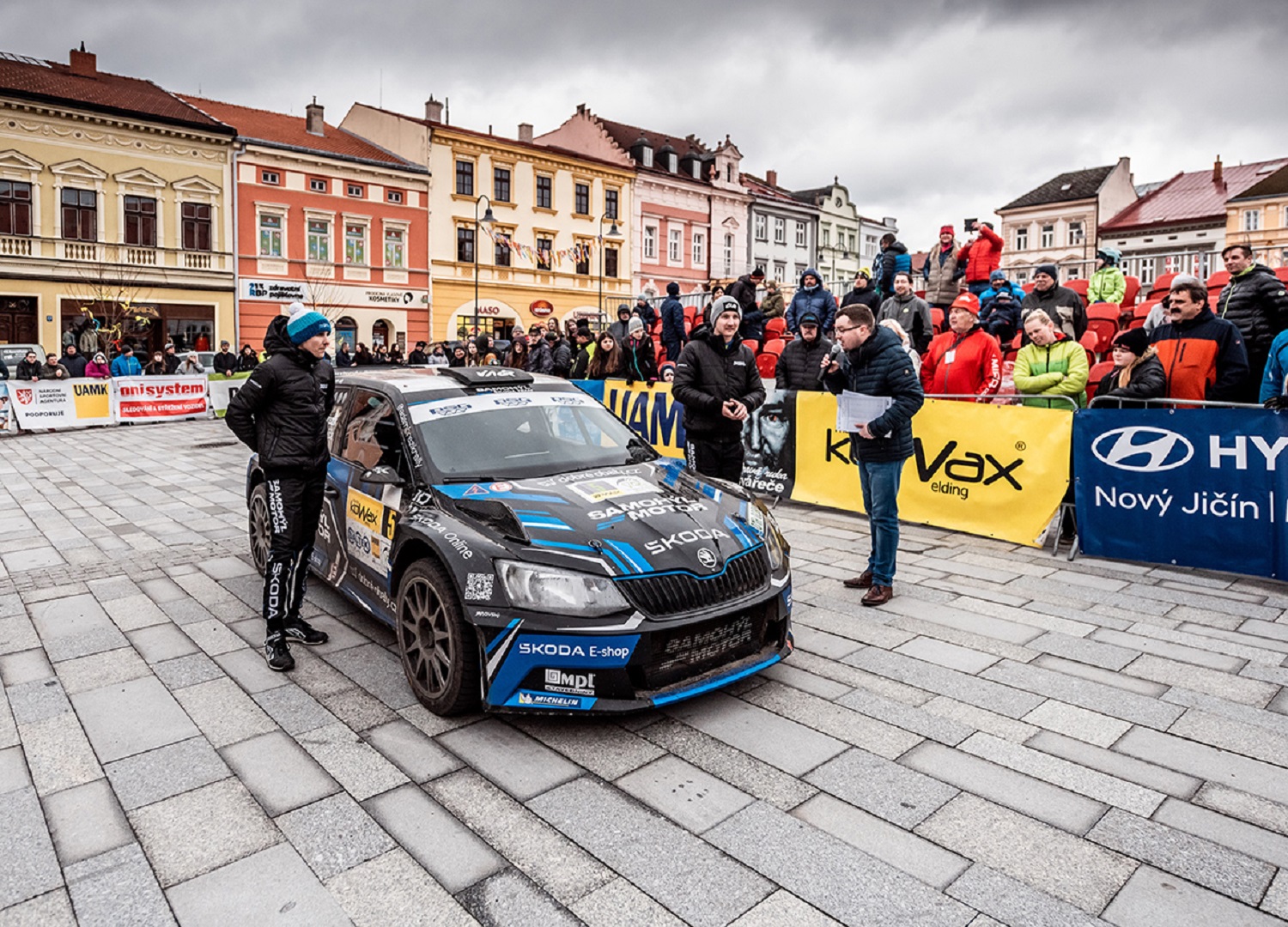 Sobotní program následně vyvrcholí testovacím shakedownem a představením vybraných posádek na valašskomeziříčském náměstí. To doprovodí i hudební program, od 15 hodin zahraje valašskomeziříčská kapela Docuku.