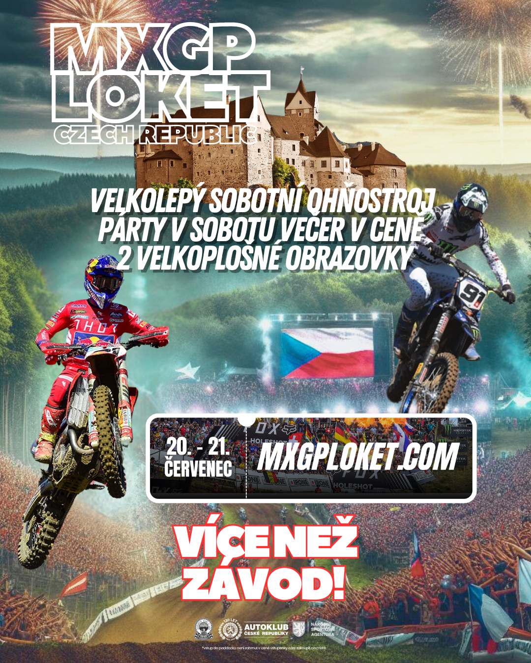 Západočeský Loket se po roce stane třetí červencový víkend metropolí světového motokrosu, konají se tady závody mistrovství světa MXGP of Czech Republic. Opět tady uvidíte nejlepší motokrosové jezdce planety v kategoriích MXGP a MX2. Bohatý závodní program v Loketských serpentinách doplní finálová klání evropské elity v nejmladších kategoriích EMX65 a EMX85. Třešničkou na dortu bude závod o titul mistra Evropy v EMX2T, dvoutaktních dvěstěpadesátkách. Ve všech kategoriích uvidíte české jezdce.