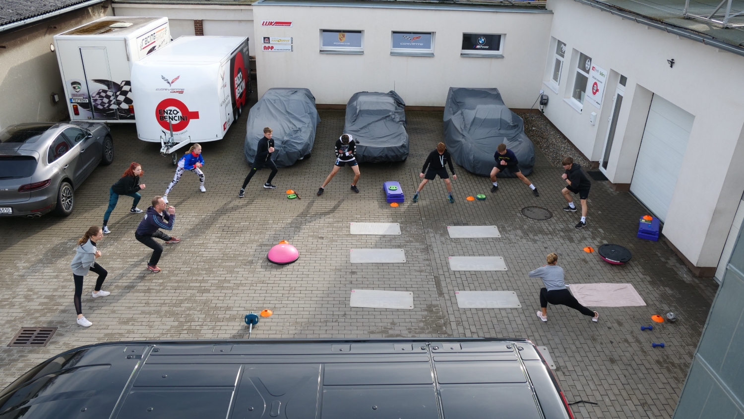 Kromě motorsportu je důležitá i fyzická příprava, která zahrnuje různorodé sportovní aktivity.