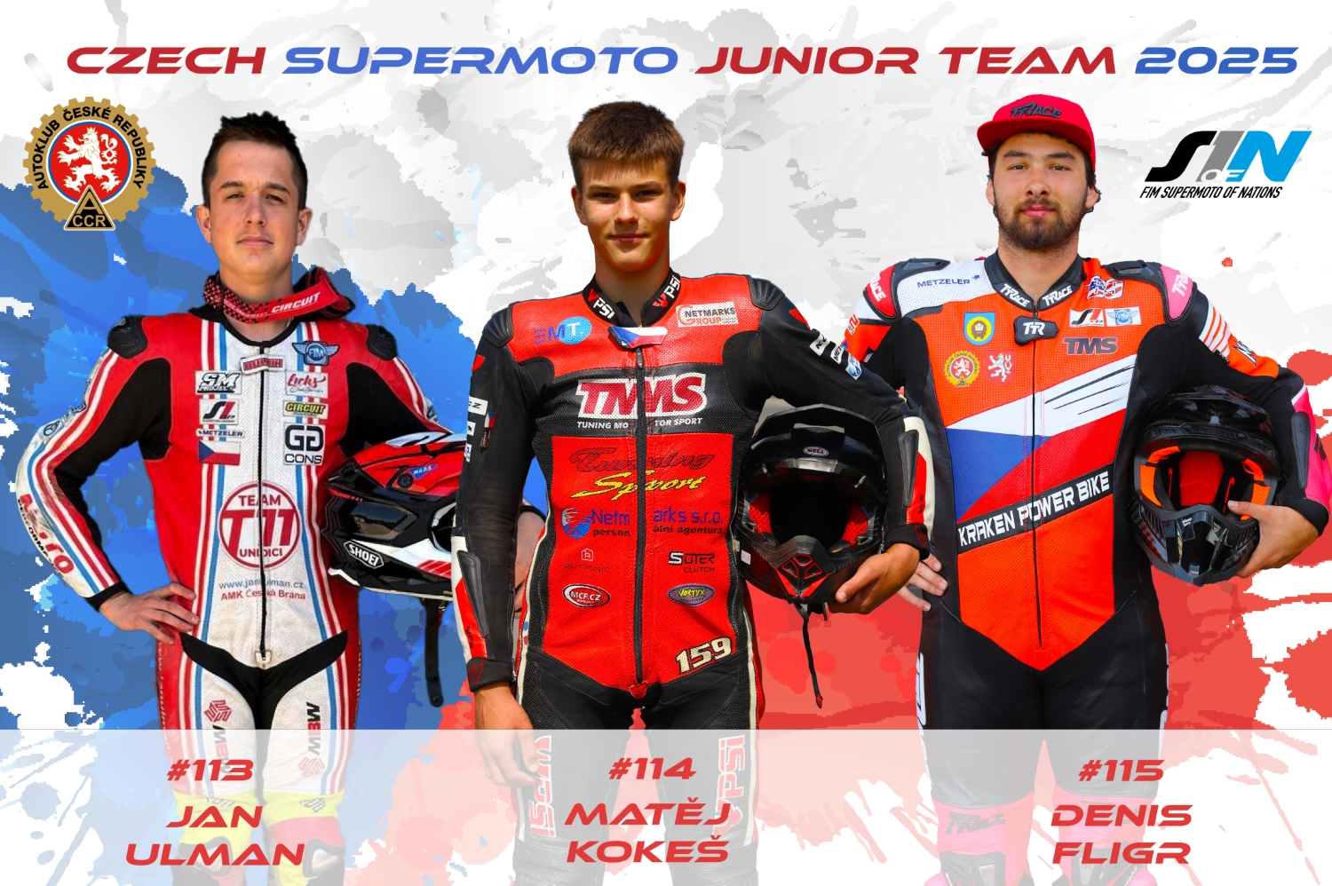 Druhý z reprezentantů, Matěj Kokeš, se závodění věnuje už od svých sedmi let a stačil již vyhrát juniorský evropský titul. V letošní sezoně pak závodí v OPEN MČR Supermoto v třídě pro talentované jezdce S1 Challenge. Třetím do party je pak Denis Fligr, taktéž velmi nadaný jezdec a rovněž mistr Evropy.