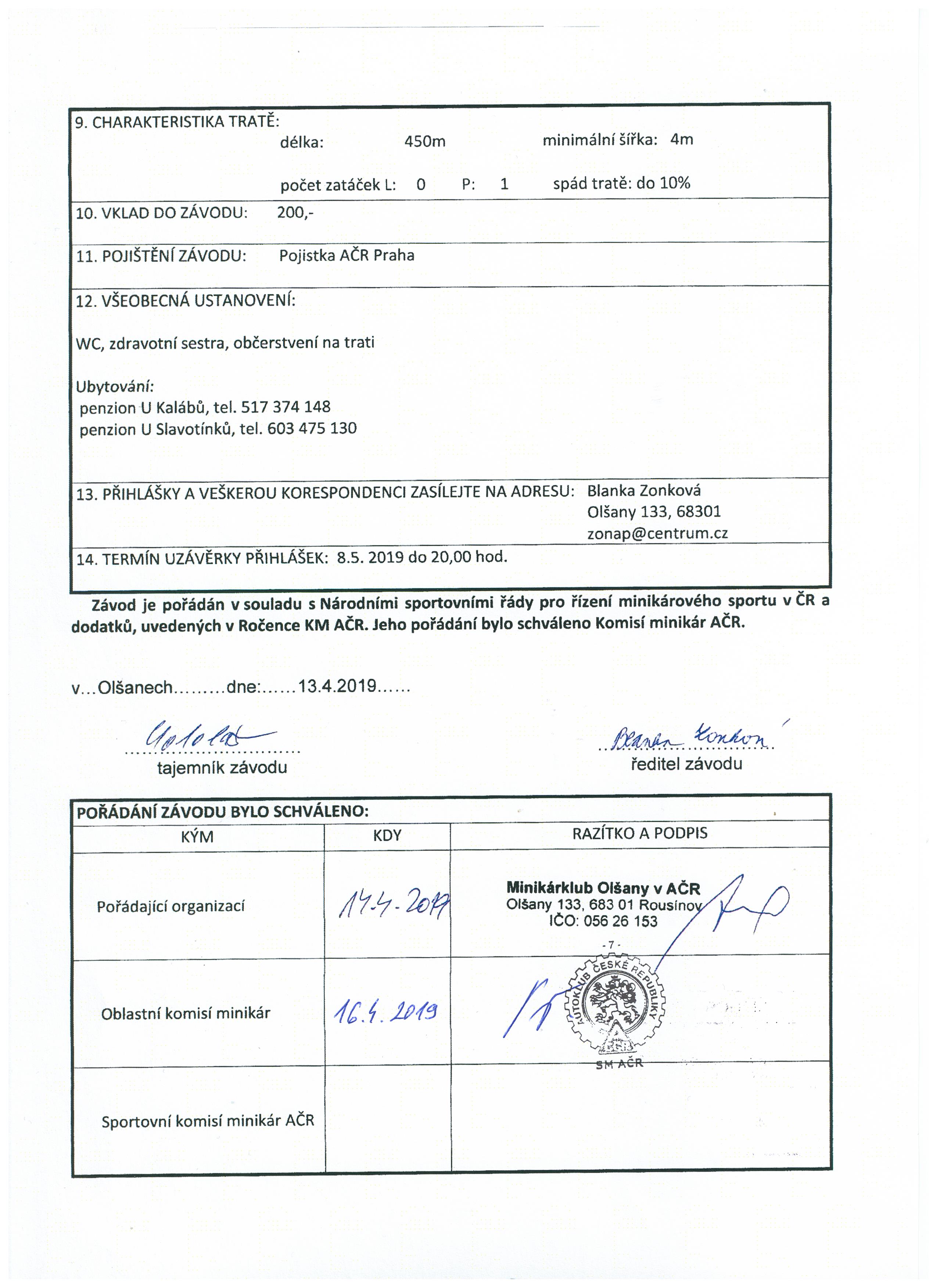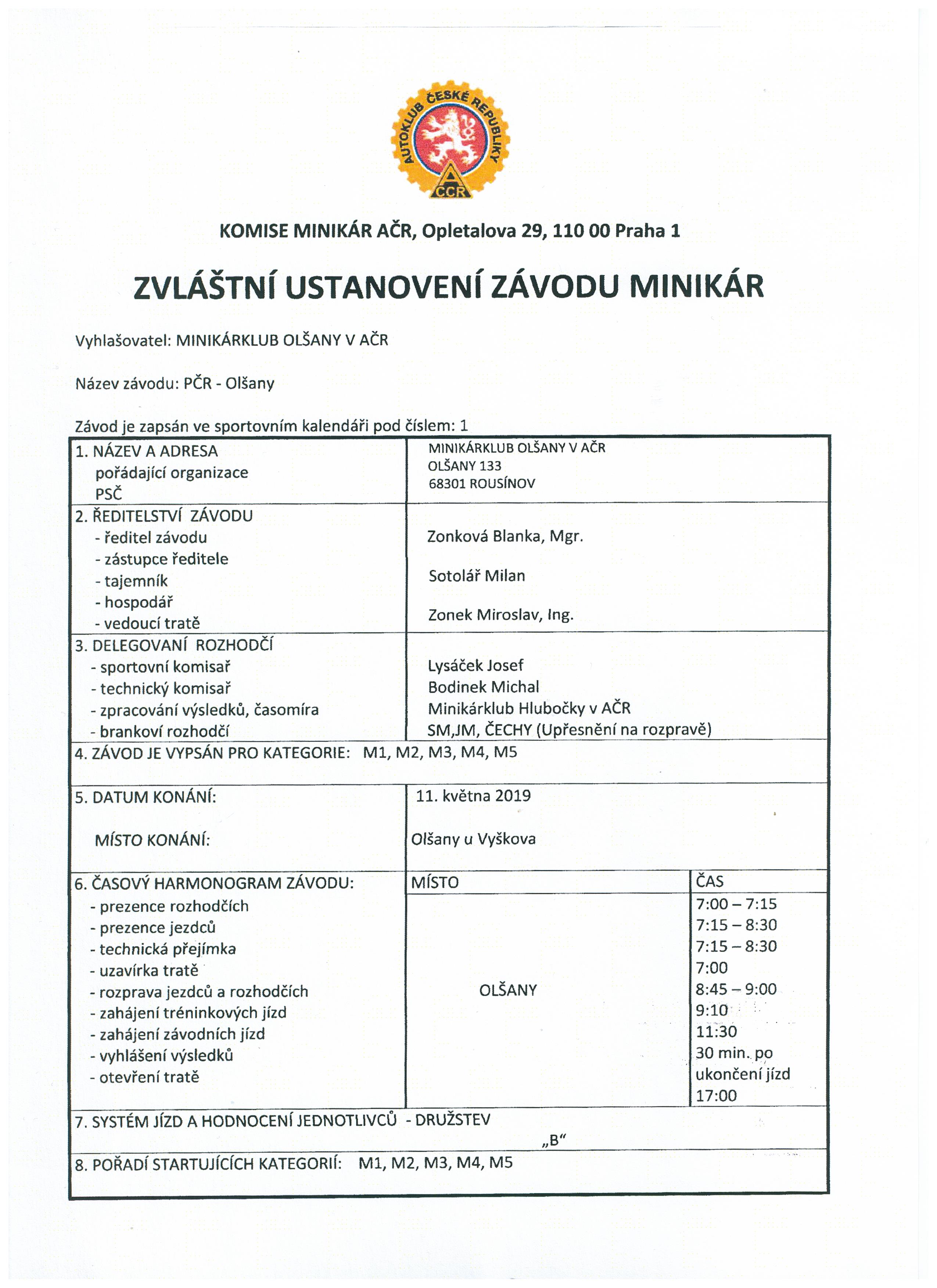 Zvláštní ustanovení - MČR minikár - 1. kolo (1. část)